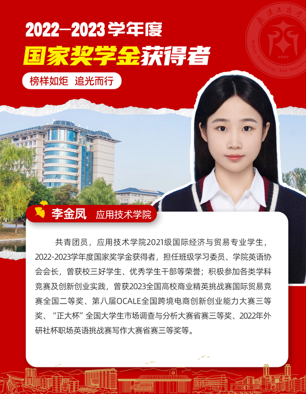 李金凤:刚进入大学的时候,因为没找到自己的目标和方向,我也有过一段迷茫时期。当时,我选择向身边优秀的师长请教,多多参加各类比赛和实践,用行动去提升自己。在实践的过程中,自然而然地就不再迷茫,逐渐找到了自己的方向。学弟学妹们也要加油,在有限的青春里去放手实践、努力拼搏,让自己不留遗憾。