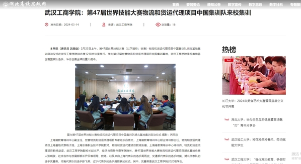 据悉,作为一所应用本科高校,武汉工商学院高度重视高素质技术技能人才的培养,充分发挥竞赛引领作用,将世界技能大赛的先进理念、技术标准、操作规范融入专业建设、课程设置等各方面,并已取得了突出成绩。目前,武汉工商学院已先后获批第45届世界技能大赛货运代理、第46届世界技能大赛货运代理和移动应用开发、第47届世界技能大赛物流和货运代理项目4个中国集训基地,以及第45届世界技能大赛化学实验室技术和货运代理,第46届世界技能大赛货运代理、移动应用开发、商务软件解决方案、化学实验室技术、水处理技术、工业设计技术8个湖北省集训基地。