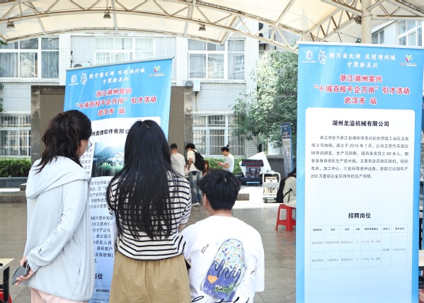 当天,由中共湖州市吴兴区委组织部(区委人才办)、湖州市吴兴区人力资源和社会保障局主办的浙江湖州吴兴区“十城百校 千企万岗”引才活动(武汉市站)也在武汉工商学院火热进行,来自浙江省湖州市吴兴区的18家知名企业来校揽才,现场提供岗位432个。