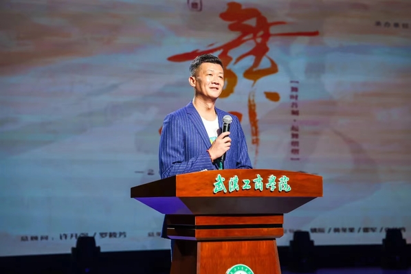 许开强院长在晚会现场致辞,他说,“同学们很幸运,因为参与《荆楚映象》节目演出,能够得到中国知名舞蹈艺术家杨丽萍老师的亲自指导,今天,她也来到现场观看同学们的演出并指导,这是对同学们莫大的鼓励,也是对学校莫大的支持,希望同学们在艺术的道路上要向杨丽萍老师学习,继续努力拼搏,舞出属于自己的精彩人生!”