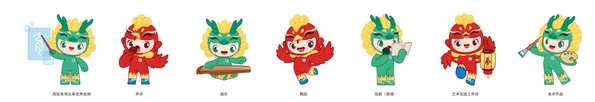 “小卧龙”创作灵感源自在襄阳隆中发生的三国典籍故事三顾茅庐的主人公卧龙先生(诸葛亮),通过襄阳的古城墙、卧龙先生的羽扇、汉江波浪等元素,以中国经典青铜色与金色为主要配色,再现了龙形象与襄阳文化元素的巧妙融合,昭示着当代中国大学生朝气蓬勃的美好形象。而“小凤雏”则以荆楚文化载体之一的凤凰为原型,结合第七届大学生艺术展演的青年学子形象,将襄阳古城墙、汉江波浪、卧龙凤雏、节日鲜花、大艺展LOGO等元素融为一身。