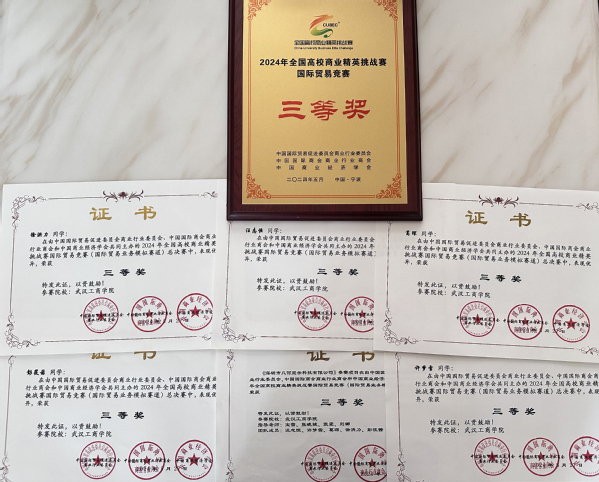 新闻中心讯(特约记者 诺敏 木易)5月23日至27日,第十四届全国高校商业精英挑战赛国际贸易竞赛(国际贸易业务模拟赛道)全国总决赛在浙江宁波举行,经过激烈角逐,由武汉工商学院经济与商务外语学院2022级国际经济与贸易专业学生汪志恒、许梦雪、葛琛、徐洪力、彭筱茜组成的代表队斩获三等奖,指导教师宝雪、张晓骏、张雯、刘娜获得“优秀辅导教师奖”。