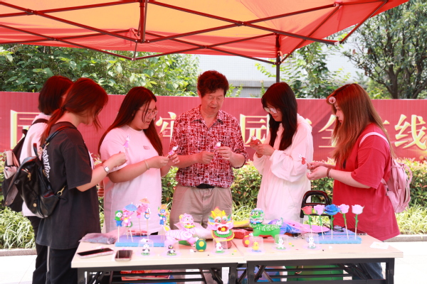 活动现场的“非遗”手工项目体验活动吸引了不少师生热情参与,湖北省民间工艺面塑技能传承人高志和、武汉非物质文化遗产民间艺术家纪淑敏以及来自武汉各地热爱民间艺术的老年人组成的阳光红艺术团走进校园,分别演示了非遗面塑、草编、采莲船等传统技艺和传统舞蹈,吸引了大批师生学习体验,并乐在其中。