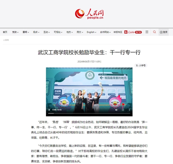“近年来,‘焦虑’‘浮躁’频频成为社会热词,如何破解这一难题,最好的办法就是‘择一事、终一生,干一行、专一行’。”6月16日上午,武汉工商学院校长孔建益在2024届学生毕业典礼上结合自己从教40年的经历勉励毕业生:要摒弃焦虑和浮躁,专注热爱的事业,经风雨、见世面、壮筋骨、长才干。