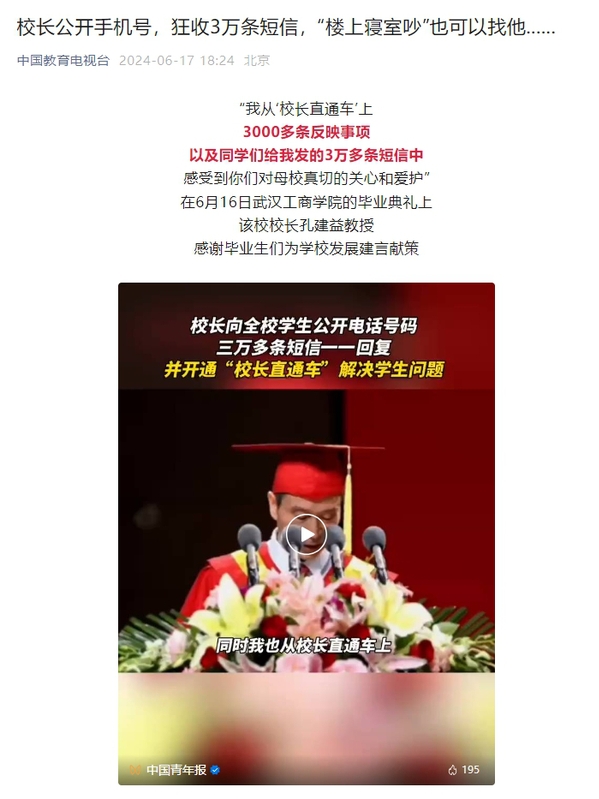 孔建益校长共收到3万多条短信