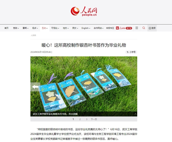 “用校园里的银杏树叶做成的书签,这份毕业礼物真的太用心了!”6月16日,武汉工商学院2024届学生毕业典礼暨学士学位授予仪式当天,该校环境与生物工程学院环境工程专业2024届毕业生樊勇攀从学校党委副书记幸福堂手中接过一张精美的银杏书签后,直呼暖心。