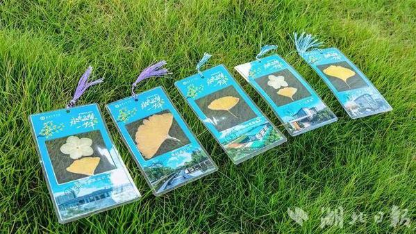 每一份书签里,都内置了一片银杏叶标本。原来,银杏树是该校“校树”,5000多片银杏叶是师生们去年深秋银杏金黄时节在校园里收集,并经过择叶、平整、风干、塑封等工序,设计制作成校园文创产品,历时将近8个月。