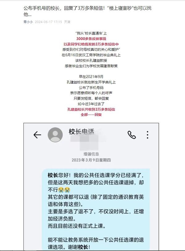 青小小微信公众号:公布手机号的校长,回复了3万多条短信!“楼上寝室吵”也可以找他...