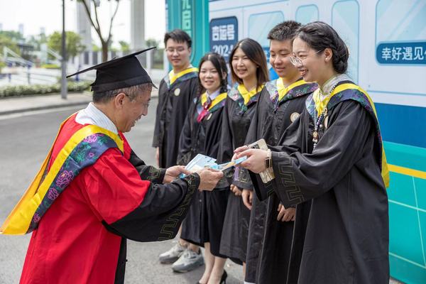 “用校园里的银杏树叶做成的书签,这份毕业礼物真的太用心了!”6月16日,武汉工商学院2024届学生毕业典礼暨学士学位授予仪式当天,该校环境与生物工程学院环境工程专业2024届毕业生樊勇攀从学校党委副书记幸福堂手中接过一张精美的银杏书签后,直呼暖心。