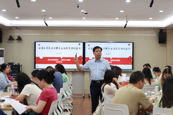 湖北省高等学校毕业生就业指导服务中心办公室主任陈彬,主管黄俐平,武汉工商学院教学质量监测与评估中心主任郭一平,督导刘丹,学生就业创业指导中心主任金学武、副主任杨凡以及生涯教育课程教师,各学院党总支书记(副书记),2024级新生辅导员等参加培训。