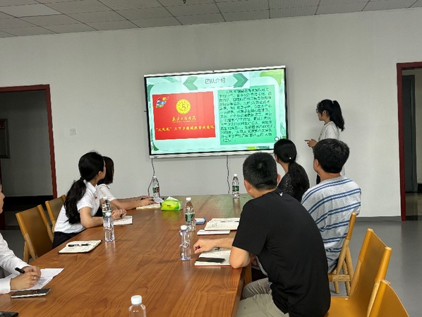 图为薛佳主任介绍管理学院特色基层党组织工作经验
