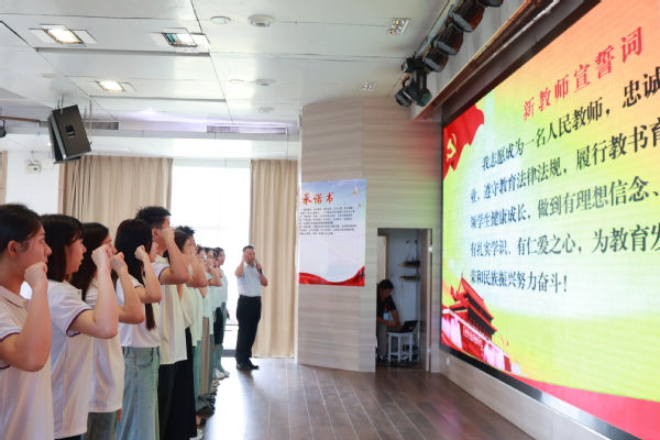 图为刘生元书记带领大家举行新进教职工入职宣誓仪式 摄影:芮雨欣