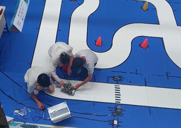 备赛期间,在学校领导的大力支持下,人工智能学院领导精心组织谋划,为参赛学生选配优质师资,开设有针对性的培训课程,从理论知识、作品设计与设备调试等各个环节为学生们提供专业指导。同时,学院也为参赛队伍提供了独立实验室和训练室,让学生们能够全力备赛。竞赛期间,参赛学生团队团结协作,综合运用多学科知识,提出设计方案、搭建汽车模型、绘制电路图、编写程序代码、调试车辆性能,出色地完成了在特定赛道上设计制作出能自主行驶且具有优越性能的智能模型汽车的任务。