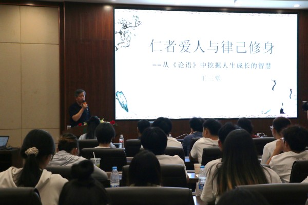 新闻中心讯(记者 陈雯茜)“修身是终身任务,同学们要注重读、写、讲、修、炼的融合,平时多读《论语》,感悟其中智慧”,8月28日上午,原河北省政协党组成员、教科文卫体委员会主任,河北省儒学会常务副会长、武汉工商学院国学教育研究院名誉院长王三堂为第九届国学夏令营学员主讲《仁者爱人与律己修身——从<论语>中挖掘人生成长的智慧》。