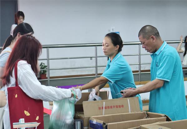 在物流学院迎新现场,该院贴心地为每一位新生准备了一个拉链文件袋,方便放置各类资料,并赠送每人一枝玫瑰,旨在以花传情,传递学院对新生的热烈欢迎与美好祝愿,同时送花也寓意“赠人玫瑰,手留余香”,希望新生能够将花转赠给自己最想感谢的人,引导他们学会感恩。此外,中秋佳节在即,该院还为每位新生准备了一份甜蜜小礼包,内含奶片、奶枣、多彩葡萄干等新疆特色美食,小礼包由该院新疆校友捐赠。