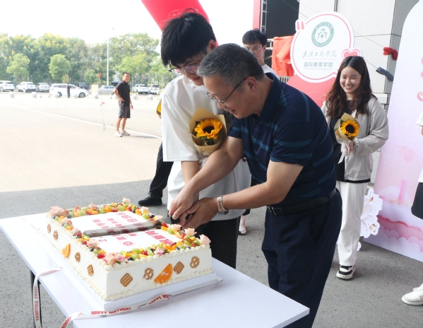 新闻中心讯(记者 周逸文)“寿星们,快来一起吃蛋糕!”9月6日上午,在武汉工商学院国际教育学院新生报到现场,9名9月份出生的新生代表在老师和同学们的热情欢呼中,度过了一场难忘的集体生日会。此外,该学院还给700多名新生每人准备了一罐印有新生姓名和报到日期的专属可乐。