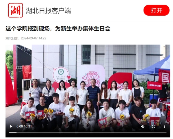 湖北日报讯(记者韩晓玲、通讯员周逸文、蓝静)“祝新同学生日快乐!”9月6日,在武汉工商学院国际教育学院新生报到现场,在师生们的欢呼和祝福中,9名生日在9月的新生代表度过了一场难忘的集体生日会。