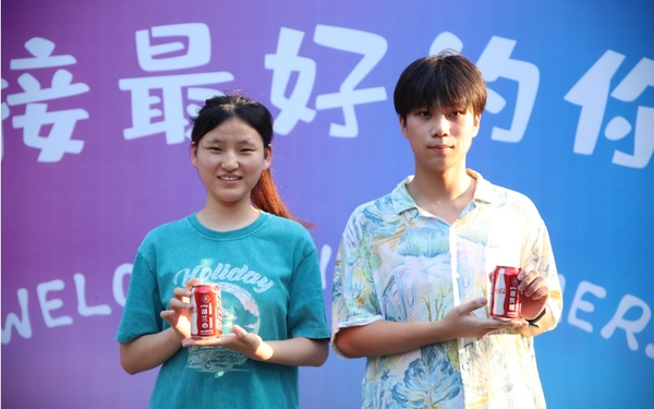 新生手拿学校定制的专属可乐 摄影:周逸文