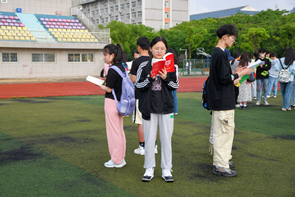 ▲英语俱乐部学生正在晨读 摄影:李宇曦
