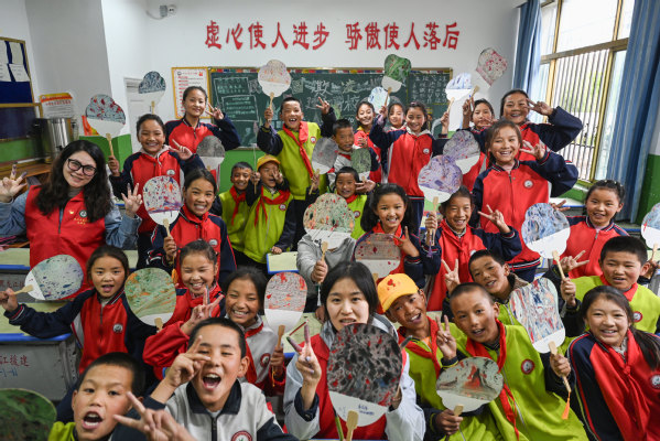 今年9月6日,学校管理学院辅导员陈金鑫、李长印带领5名学生志愿者组成的关爱队再次来到康雄乡中心小学,结合当地教学情况和需求,为四、五年级100多名学生上了航模、绘画、非遗漆扇、舞蹈等一系列“定制”的特色课程。