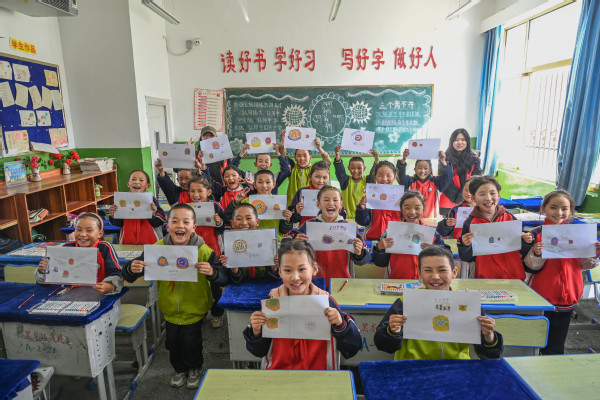图为当地孩子在临别前送给志愿者们的祝福卡片 摄影:李若源