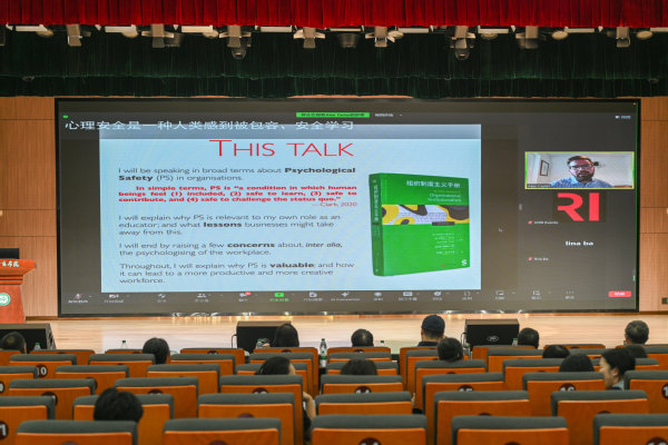 英国剑桥大学菲茨威廉学院研究员、继续教育研究学院哲学与跨学科研究学术主任Alex Carter博士则从组织心理安全的视角,与学校师生深入探讨如何在职场的组织制度中建立和维护心理安全感,激发员工创造力。