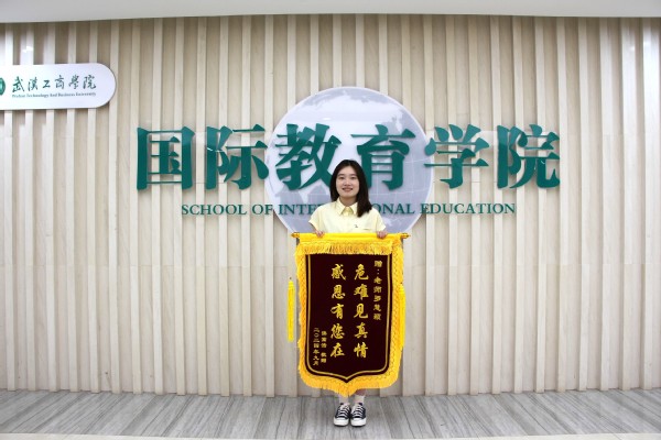 新闻中心讯(记者 雷雯珊)9月14日上午,在武汉工商学院南门,国际教育学院辅导员罗慧颖收到了一面由家长送过来的锦旗,上面镌刻着“感恩有您在,危难见真情”的金色大字。
