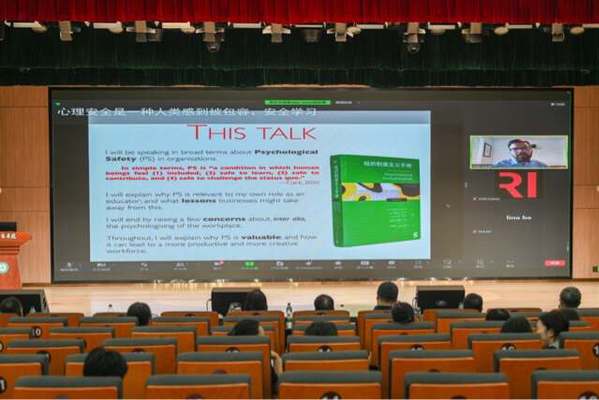 英国剑桥大学菲茨威廉学院研究员Alex Carter博士则从组织心理安全的视角,与学校师生深入探讨如何在职场的组织制度中建立和维护心理安全感,激发员工创造力。