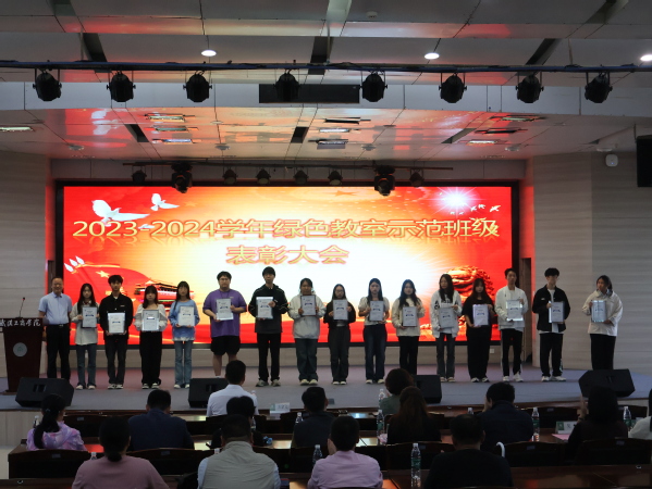陈义文部长宣读了《关于表彰2023-2024学年绿色教室示范班级的决定》,授予2023级数字经济2班、2023级人力资源管理1班、2023级人力资源管理2班、2023级会计学5班、2023级财务管理1班等15个优秀获奖班级“绿色教室示范班级”荣誉称号。