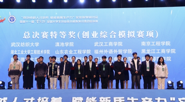 新闻中心讯(特约记者 子建 杨沁)11月3日,第十一届“学创杯”全国大学生创业综合模拟大赛全国总决赛在江苏徐州落下帷幕。由武汉工商学院湖北省级重点经济管理实验教学示范中心主任毛志山、教师曹子建带队,管理学院学生高瑞阳、李昌清,艺术与设计学院学生梁宗阳组成的“三个臭皮匠”队,与来自172所高校的250支队伍同台竞技,凭借出色的创新创业能力和团队协作精神,荣获大赛创业综合模拟赛道本科组国家级特等奖,教师曹子建、刘佳欣获评最佳指导教师。这也是学校参加该项赛事以来取得的最佳成绩。