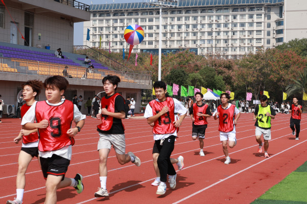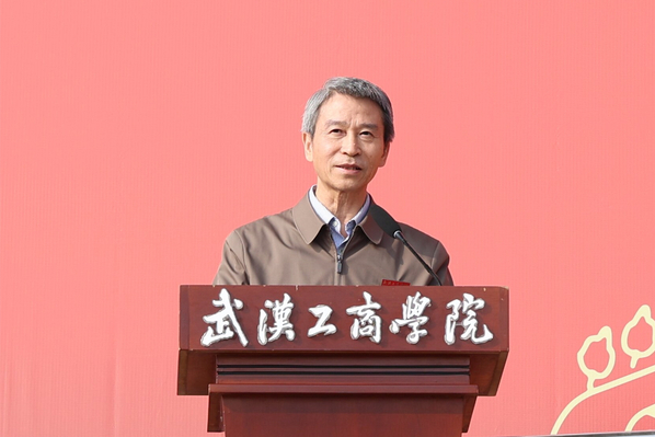 他强调,运动会是学校一年一度的体育盛事,是持续深化体教融合,激活育人功能的具体体现,是对同学们心理素质、身体素质、体育运动水平的一次阶段性验收,也是对全体武工商人组织纪律性和精神风貌的一次综合性检阅。他对同学们提出了两点期望,一是要传承和弘扬中华体育精神,在本届运动会上赛出风格、赛出佳绩、赛出友谊,今后共同为体育强国建设贡献青春力量,同时将体育精神延伸到学习和工作中,时刻以奋斗者的姿态,主动树一流、积极争一流、努力创一流,共同为学校高质量发展强基赋能;二是要练就强健体魄,规律作息、养成体育锻炼的习惯,掌握一两项运动技能,在运动中强健体魄,做到“三走”“四早”,即走下网络、走出宿舍、走向操场,早睡、早起、早锻炼、早饭。