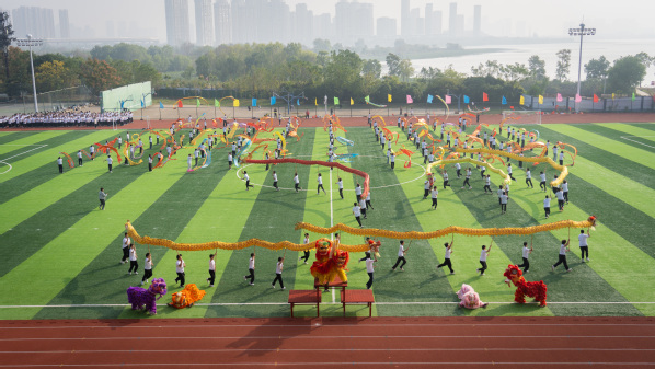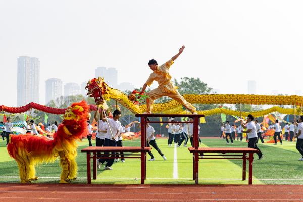 学校公共课部还精心准备了舞龙舞狮、大型团体八段锦等表演,热烈的氛围感染了在场的每个人。