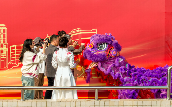 图为龙狮点睛环节 摄影:贺熊邹
