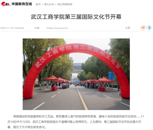 琳琅满目的民族服饰和手工艺品、散发着诱人香气的各国特色美食、趣味十足的各国民俗文化活动……11月14日中午12:00,武汉工商学院校园主干道博问路上热闹非凡、人头攒动,第三届国际文化节在此盛大开幕,吸引了不少师生前来参与。