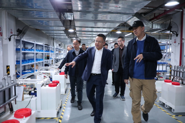裘建勇书记一行先后参观了学校合作企业湖北君安储能科技有限公司光储充示范项目、制造中心,以及学校校史馆、实验教学中心等,实地调研学校校企合作、产教融合的模式、特色、成效等。