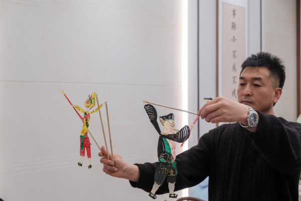 新闻中心讯(通讯员 周逸文 李洋洋)“耍皮影时,可用一只手握脖签,另一只手掌握两根手签,将影人贴近幕布,或贴近玻窗墙壁上”……12月12日下午,武汉工商学院人文馆内热闹非凡,充满了欢声笑语,该校学生正在“零距离”观看、体验我国国家级非物质文化遗产——皮影戏、中国结和糖画技艺,感受优秀传统文化魅力。