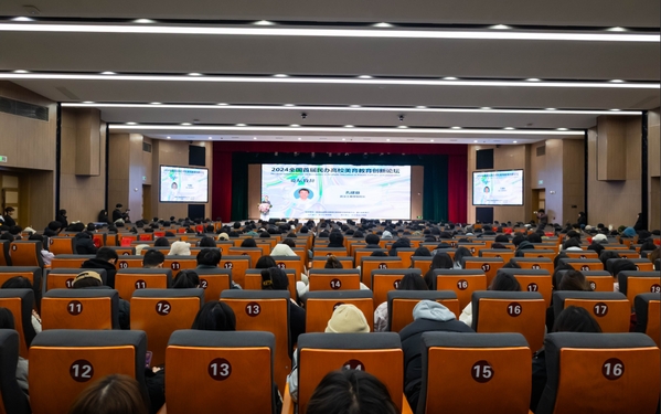 首届全国高校美育教学指导委员会主任、中央美术学院原党委书记高洪表示,高校要深入学习贯彻习近平总书记给中央美院8位老教授的重要回信精神,弘扬中华美育精神,以美育浸润学生,具体措施有:通过美育课程、课程美育、活动美育、氛围美育综合发力;通过“八有”(有教学机构、有课程、有质量、有空间场地、有设备器材、有经费保障、有专兼职教师、有展示机会)抓落实;发挥学校美育的辐射和影响作用。他认为,开展美育浸润行动,关键在师资队伍建设与课程建设,要建设一支掌握AI技术的美育教师队伍,讲好艺术鉴赏和艺术实践体验课程,要邀请各学科领域的专家挖掘各学科领域里美的元素,形成示范案例和指导纲要,指导其他教师开展课程美育,同时建设好美育名师工作室和学生艺术团。对于当前高校美育工作的重点方向,他强调,要实施好“为建设中华民族现代文明作贡献”和“推动美术与现代化产业体系相融合”这两大行动计划,有力推进学校美育浸润行动。他还对武汉工商学院的美育创新经验给予高度评价,认为该经验在全国高校具有推广和示范价值。