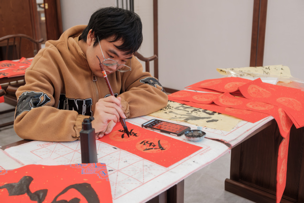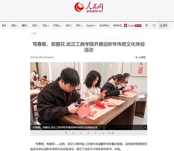 写春联、剪窗花……日前,武汉工商学院人文馆内洋溢着新年的喜庆氛围,该校国学教育研究院正在举办迎新年传统文化体验活动,吸引了全校不少师生前来参与、体验。