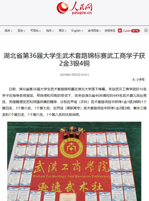 周龙老师介绍,本次比赛成绩的取得也得益于学校公课部、校团委、校社联、校武协等相关职能部门的大力支持,在大家的共同帮助和努力下,学校学子在赛场上展现出了飒爽英姿,充分彰显了学校体育人才培养的卓越成果。