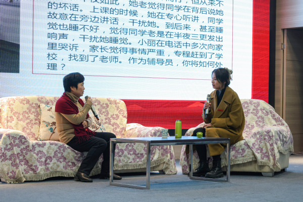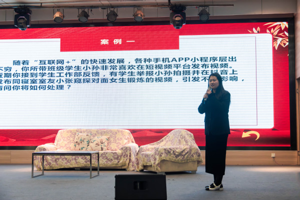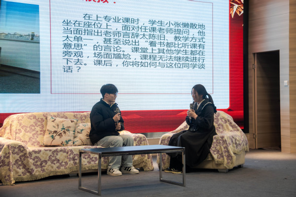 在比赛中,来自各二级学院的10位辅导员们思路清晰、逻辑缜密、分析合理、处理得当,表现出了优良的政治素质、理论水平、专业素养和职业能力:肖隽老师在面对学生毕业实习碰壁案例时,思路清晰,从多方面分析这个学生所遇到的难题,既分析了外部环境,又分析了学生自身的问题所在,深入浅出,为学生提供了切实可行的帮扶方案;龙黎明老师在处理学生问题时注重循序渐进和加强对学生教育的引导,尤其在面对学生情绪波动较大的问题时,特别提出了要关注该学生的社交媒体,随时关注其思想动态,只有了解学生真实面临的问题,帮助学生厘清问题所在,才能有效掌握处理问题的主动权;程琬涵老师在谈心谈话环节遇到了一位遭到孤立的学生的家长,这位“家长”一上来便气势汹汹向老师问责,后面更是对老师“百般刁难”,这无疑给辅导员老师的疏导工作增加了难度,但程琬涵老师的表现可圈可点,首先安抚了家长的情绪再对问题进行处理,整个过程,随机应变且十分有耐心,展现了她敏锐的问题分析能力、灵活的沟通技巧和良好的心理素质……