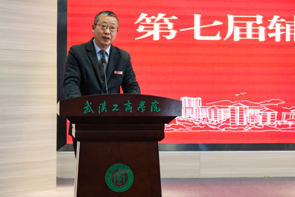 湖北经济学院马克思主义学院副院长王海涛、湖北大学知行学院学生工作部部长王刚、武汉工程大学邮电与信息学院学生工作部部长李承亮、武汉华夏理工学院学生工作部部长陈伟以及武汉东湖学院学生工作处处长戴丽丽担任本次大赛评委,武汉工商学院副校长左宗文、学生工作部部长陈义文以及各学院党总支书记,全体辅导员老师、部分学生代表现场观摩了本次比赛。