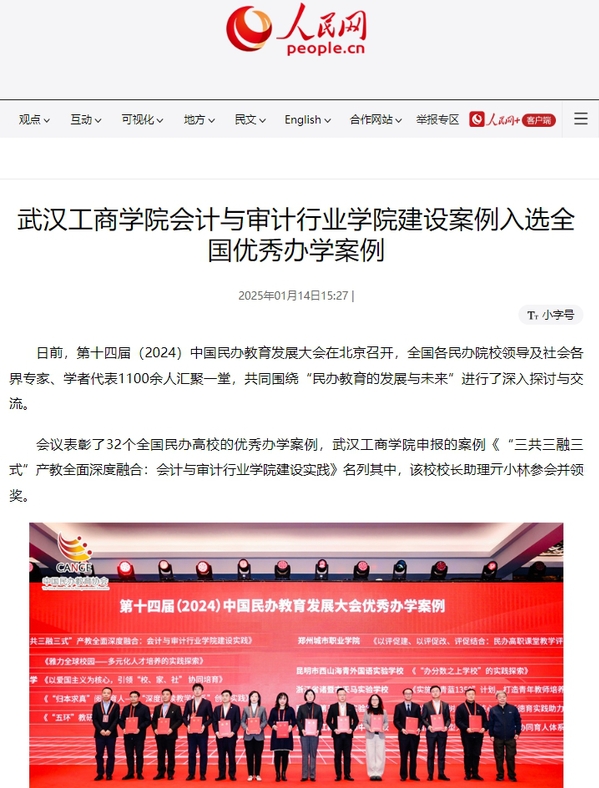 会议表彰了32个全国民办高校的优秀办学案例,武汉工商学院申报的案例《“三共三融三式”产教全面深度融合:会计与审计行业学院建设实践》名列其中,该校管理学院教授亓小林参会并领奖。