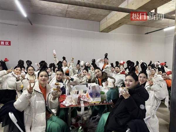 天冷情暖,学院第一时间为学生统一定制和采购了羽绒服、打底的排练服、保暖靴、暖宝宝等保暖物资,以及贴心准备了感冒药、润喉糖、治疗跌打损伤的各类药品;深夜排练总是饥肠辘辘,老师们暖心备夜宵,并多次在元旦、小年等佳节以及日常排练中,为刻苦训练的学生们改善伙食,奶茶、汉堡、蛋糕点心、零食等一应俱全;为了让学生们能够有更加充足的时间和精力,全力保障春晚的集中训练,在保证学业的前提下,学院甚至调整了学生们的期末考试时间……点滴关怀,化作冬日暖阳,守护学子们。