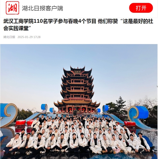 记者了解到,武汉工商学院110名参演学生中,有20人是大一学生。一名学生兴奋地说:“上大学后的社会实践‘第一课’,竟然是登上春晚舞台,真的太难忘了!”