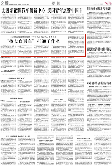 有学生反映想选的选修课没选上,教务部经过调研,有针对性地在本学期增加了需求量大的20多门选修课;有学生反映图书馆考研自习室插座太少,图书馆便在两个自习室增加了近百个共用插座,让每一名在自习室学习的学生可以用电脑;有学生反映楼上寝室太吵影响休息,学生工作部立即请双方辅导员调解矛盾、解决问题……这些学生关心的“日常小事”,通过“校长直通车”反馈后,成为学校高度重视的“民生大事”。学生只要在手机上反馈后,很快就能得到回复和解决,便捷、高效的沟通和处理方式受到了学生的喜爱。
