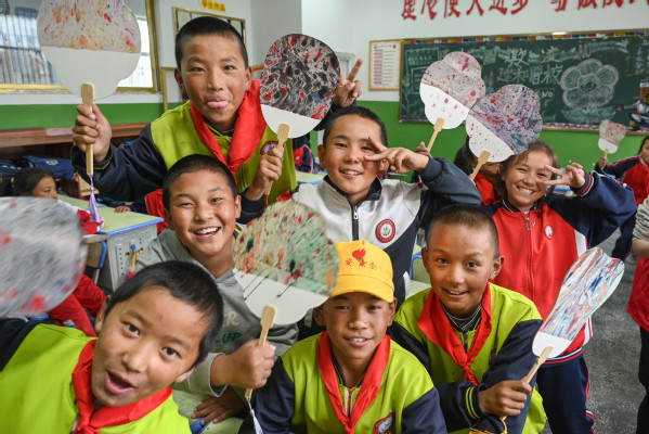 在漆扇制作课上,志愿者刘菡莲耐心地教孩子们制作漆扇,向他们展示所需材料和工具,并详细讲解注意事项。孩子们充分发挥创意,制作出了各式各样的漆扇,在感受传统文化魅力的同时,也收获了满满的成就感。四年级学生扎西曲珍开心地说:“这是我第一次听说和制作漆扇,我手中的这把漆扇可是独一无二的呢!”