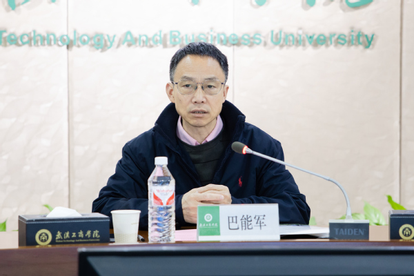 巴能军董事长致欢迎辞,他向与会嘉宾简要介绍了武汉工商学院的基本情况。他表示,学校自办学以来,积极响应国家关于深化产教融合、科教融汇的号召,始终高度重视教育与产业的紧密对接,将产教融合贯穿于应用型人才培养全过程,在推进学校开展校企合作、引企入校方面进行了许多有效的尝试,并且取得了不错的成绩,得到社会的广泛认可。他希望通过此次交流的良好契机,双方能进一步加深认识、携手共赢、共促发展,为高素质应用型人才的培养做出积极贡献。