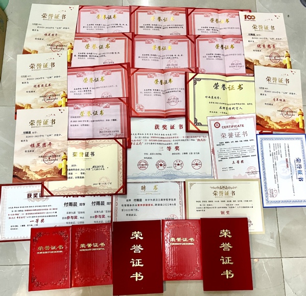 图为付雨晨所获荣誉证书