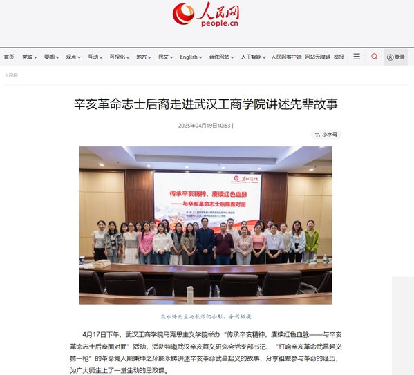 4月17日下午,武汉工商学院马克思主义学院举办“传承辛亥精神,赓续红色血脉——与辛亥革命志士后裔面对面”活动,活动特邀武汉辛亥首义研究会党支部书记、“打响辛亥革命武昌起义第一枪”的革命党人熊秉坤之孙熊永铸讲述辛亥革命武昌起义的故事,分享祖辈参与革命的经历,为广大师生上了一堂生动的思政课。