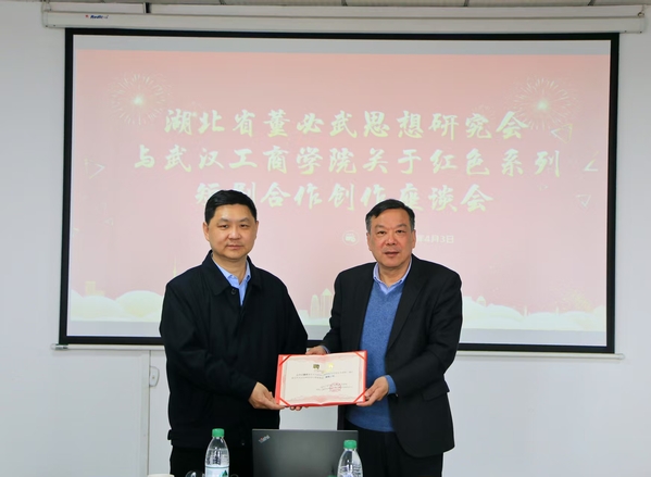 新闻中心讯(特约记者 姜倩)近日,董必武嫡孙、湖北省董必武思想研究会会长董绍壬一行来武汉工商学院考察交流,围绕网络红色短剧《启航》项目召开合作交流座谈会。武汉工商学院马克思主义学院院长张继才、党总支副书记海鹏,校团委书记邱玉添,校党委宣传部文化建设科科长李萌等人参加座谈会。